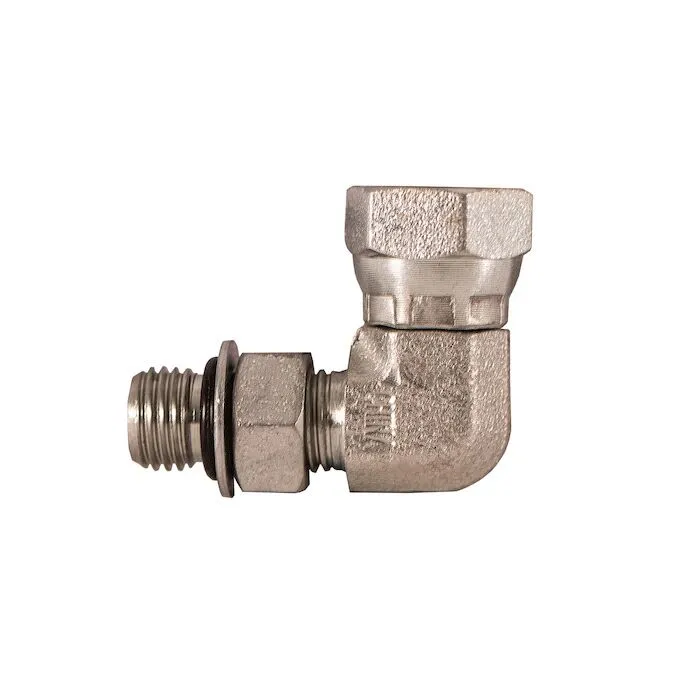 The Male Straight Thread to Female Pipe Swivel 90º Elbow adapter is part of the Buyers Products line of swivel adapters. These adapters make a metal-to-metal seal to a male pipe. They feature tough carbon steel construction, a tight, secure connection, and a corrosion-resistant zinc finish.
