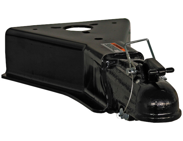 The coupler is made of sturdy cast steel with a black powder-coated finish for corrosion resistance. It will handle a maximum gross towing weight of 15,000 lb.