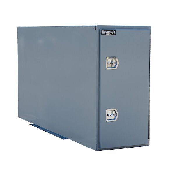 The box is ideal for use on cab-over trucks. It allows clearance for frame-mounted battery boxes and tanks. Installation is easy with built-in frame mounting rails. A corrosion-resistant powder-coated finish, rubber D-bulb sealed doors, and a built-in rain channel helps protect your tools and equipment from weather and theft.