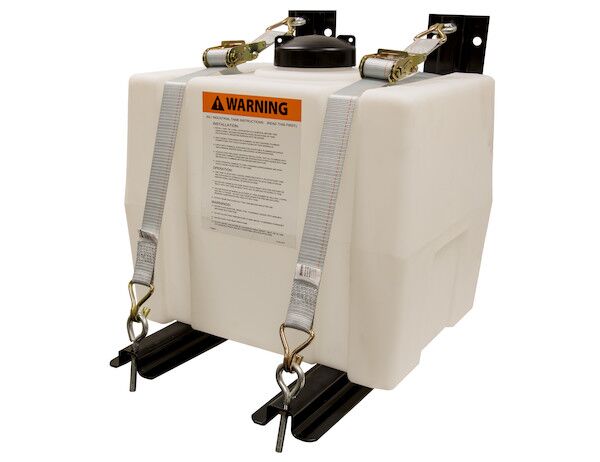 The pre-wet kit comes with a 30 gal polymer reservoir specially designed for truck frame mounting. The corrosion-resistant poly reservoir is held in place by included stainless steel brackets and tie downs. Each kit also includes a pressure sensor to indicate a filter clog or low tank level.