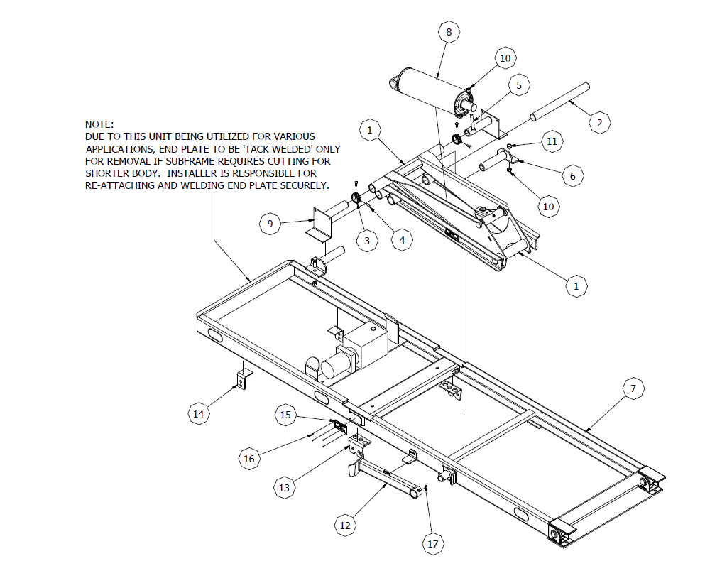 Champion Hoist 615T – 11 Foot Subframe Assembly Diagram