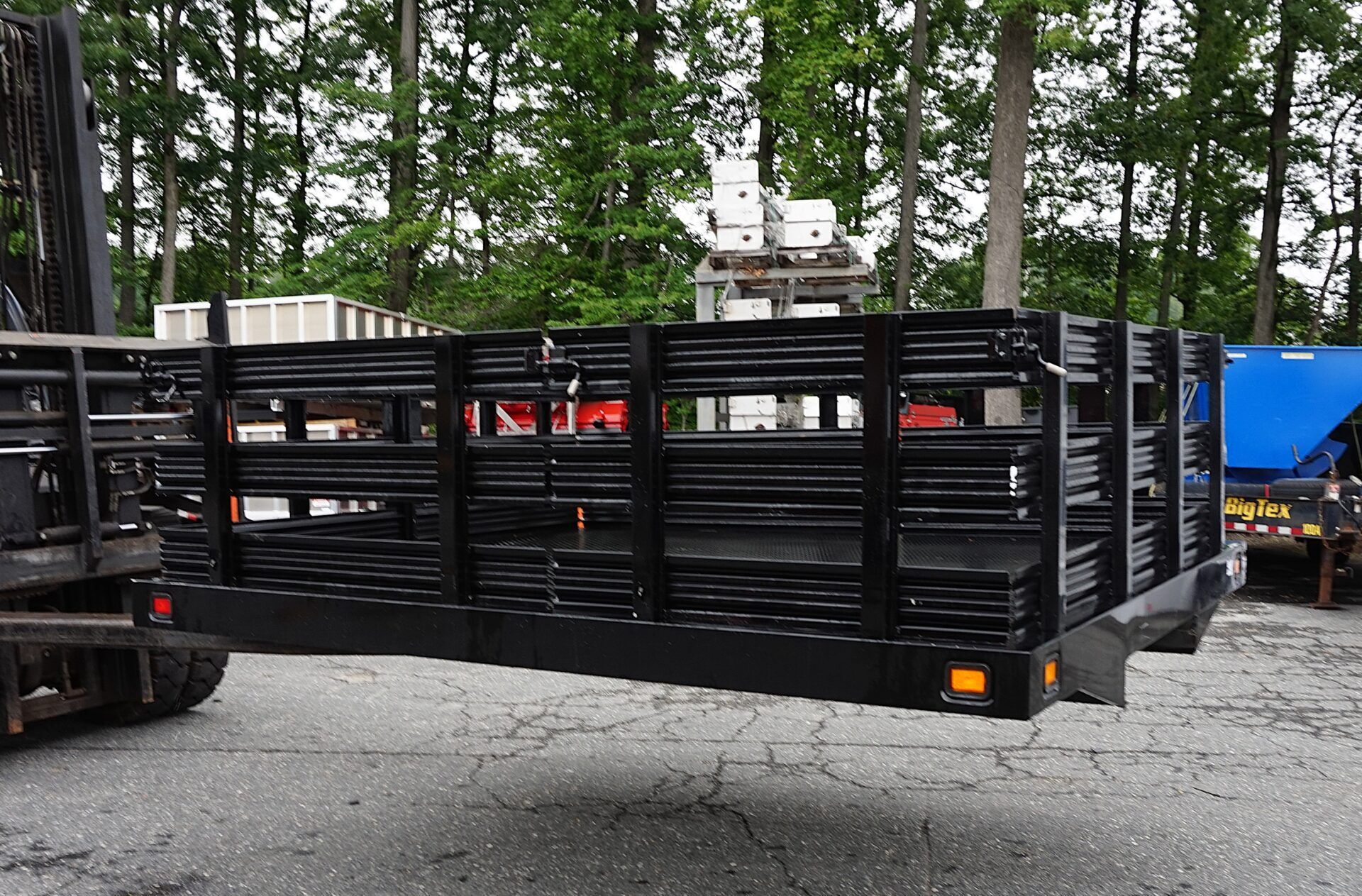 Two (2) 28in high (three slat) lift-out stake racks on each side