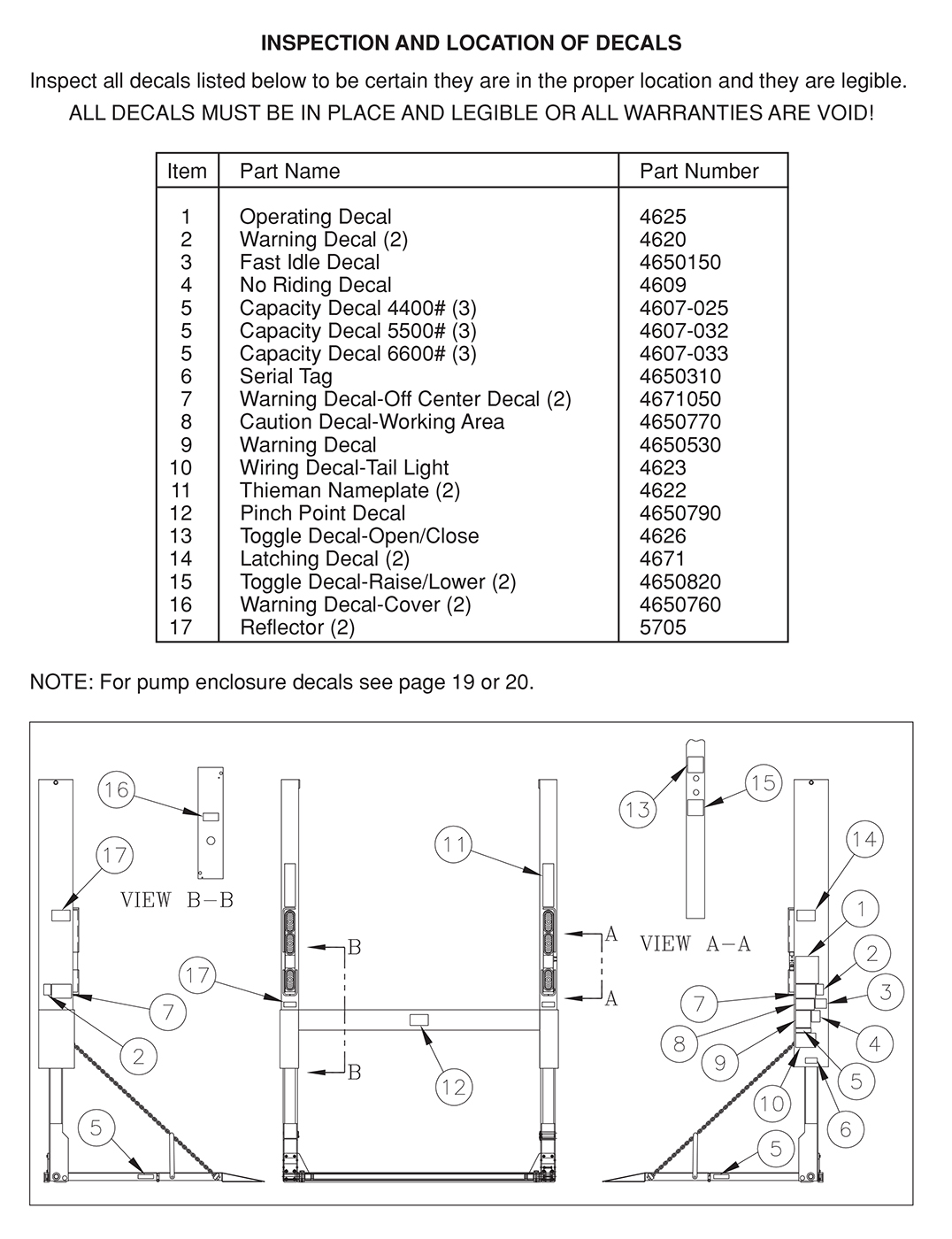 LIFTGATE PARTS ORDERED WITHOUT PROVIDING YOUR LIFTGATE MODEL/SERIAL NUMBERS ARE NOT ELIGIBLE FOR RETURN.